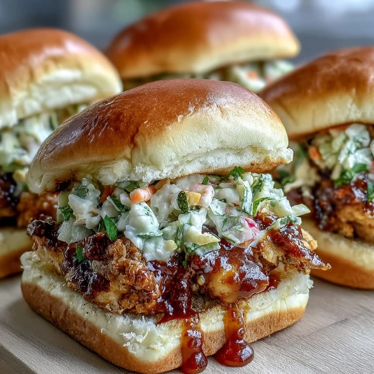 In the beginning, I thought the coleslaw was just a topping, something to add texture. Then I realized it's actually the thing that keeps these sliders from feeling heavy or one-note. That acidity, that crunch, the way it contrasts with the warm, saucy chicken—it's not decoration, it's the architecture of why these work. Make enough coleslaw because people will eat it straight from the bowl while waiting for the chicken to finish cooking.