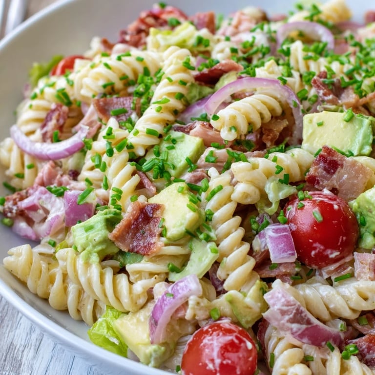 - Toss the cooled pasta with tomatoes, lettuce, onion, and bacon in a large bowl, then drizzle the dressing over everything and fold gently so each piece gets coated without crushing the delicate ingredients. If you're adding avocado, fold it in just before serving so it stays creamy and doesn't brown.