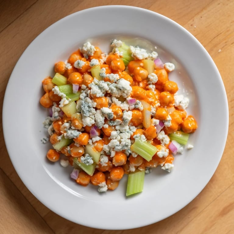 Pin it There's something about the unexpected combination of spicy and cool that catches you off guard in the best way. I threw this salad together one weeknight when I had a jar of buffalo sauce in the pantry and a couple of cans of chickpeas staring at me from the cupboard, wondering if they belonged together. The moment I tossed them with some crisp vegetables and tangy blue cheese, I realized I'd stumbled onto something that tasted bold and satisfying without any fussing around. It's become my go-to when I want something that feels indulgent but doesn't require hours of prep.