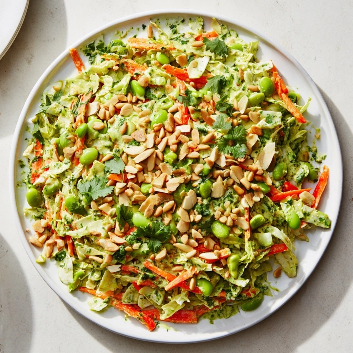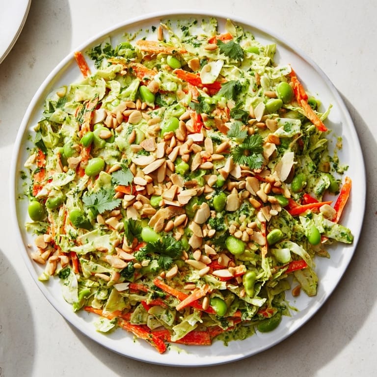 Pin it There's this moment every summer when I'm standing in the produce aisle, surrounded by the smell of fresh greens, and I see cabbage stacked so perfectly that I just have to make a salad. This one came from an afternoon when I was craving something that would wake up my taste buds—crisp, bright, and nothing fussy. The edamame adds this happy protein boost that makes it feel substantial without heavy, and that Green Goddess dressing? It's become my secret weapon for turning simple vegetables into something people actually get excited about.