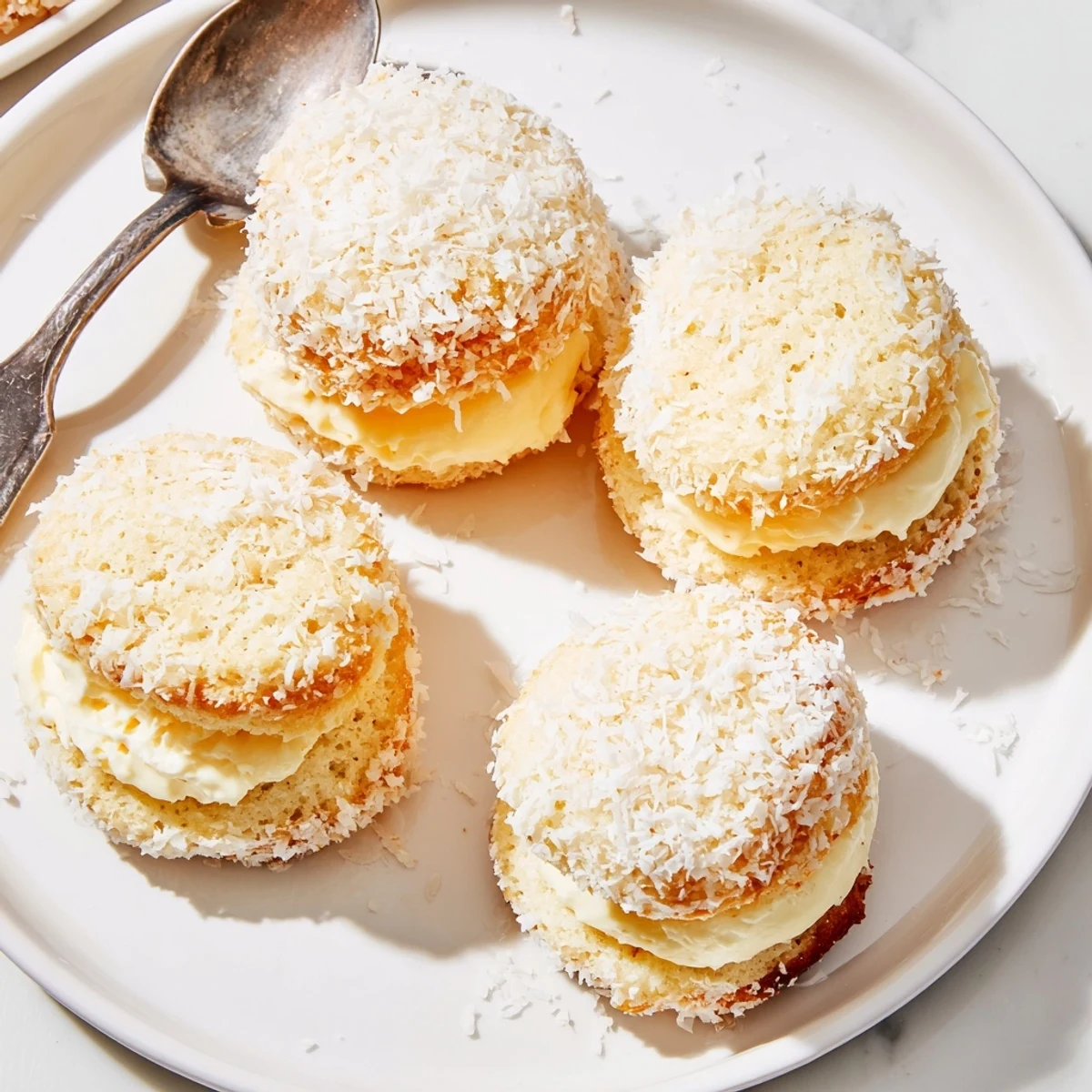 Pin it Delicate, fluffy tea sandwiches with a creamy filling, elegantly rolled in shredded coconut to resemble tiny snowballs&perfect for winter gatherings or afternoon tea.