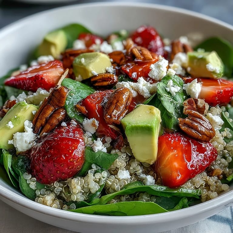 Pin it Some afternoons, the light in my kitchen turns gold just as I'm slicing strawberries for this salad. I remember the faint citrusy aroma teasing the air while my playlist mingles with the sound of quinoa simmering. This combo of juicy berries and creamy avocado always feels like a little surprise waiting in the bowl. There’s something about mixing sweet and savory that makes lunch more exciting. Even if you’re rushing, it comes together quickly but tastes like a celebration.