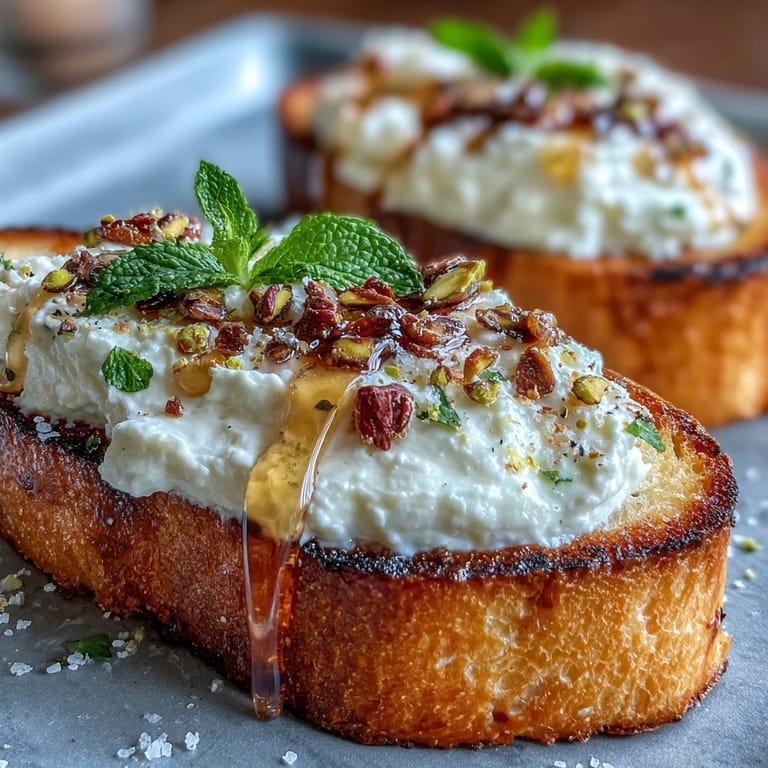 Pin it The first time pistachios and honey found their way onto my bruschetta happened on a whim—nudged by a half-empty tub of ricotta in the fridge and a friend’s offhand mention of sweet-salty snacks. The kitchen was alive with the sound of bread sizzling as it toasted, and the citrusy scent of lemon zest filled the air as I grated the last bit over pillowy whipped ricotta. Pairing nutty pistachios with creamy cheese felt bold, yet it unfolded like pure serendipity. The resulting appetizer looked almost too pretty to eat, but curiosity and a hungry crowd left only crumbs behind. That unexpected experiment instantly earned a spot in my regular dinner rotation for its ease and elegance.