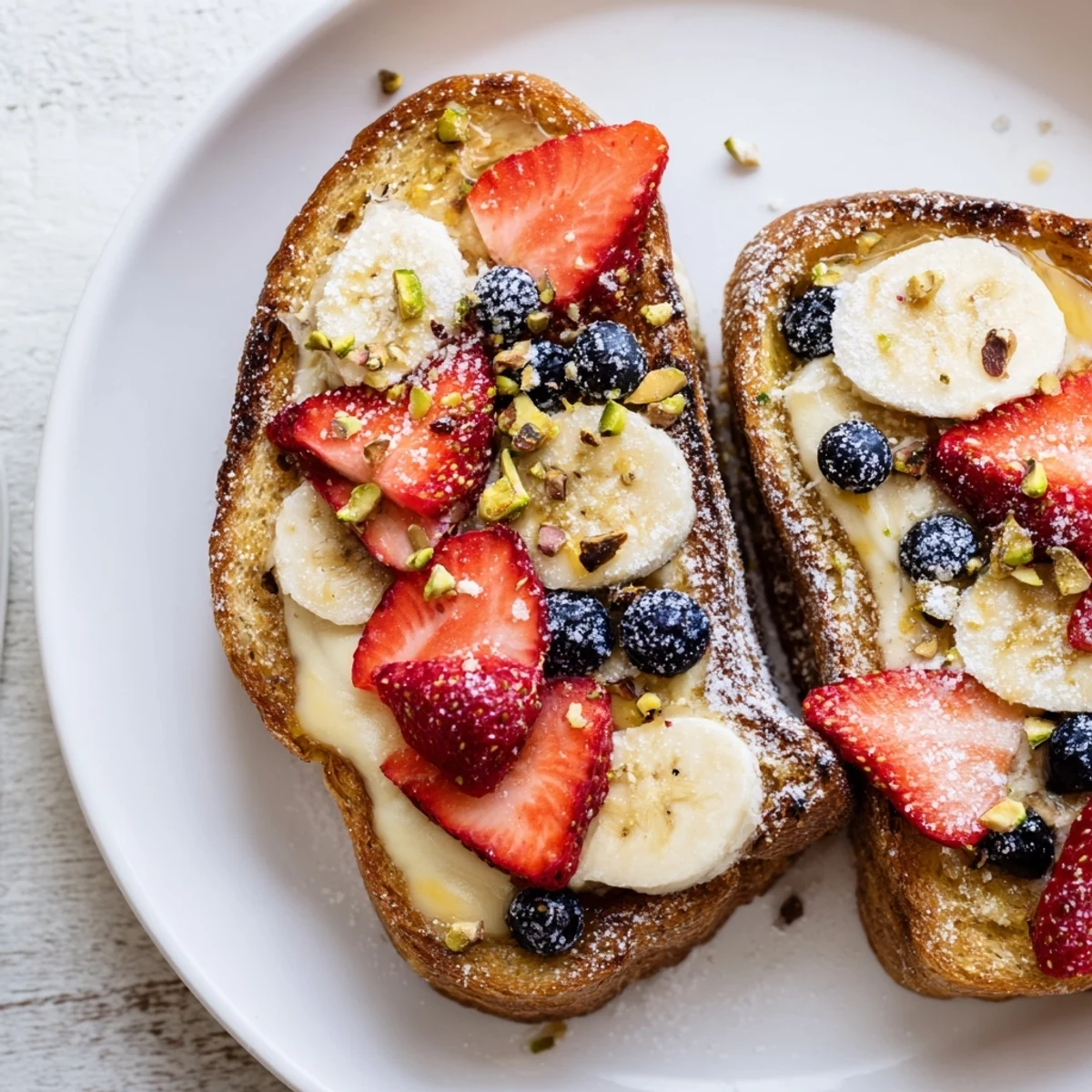 The three-fruit combination of strawberries, blueberries, and banana is my default because they're usually available and they look gorgeous together, but this recipe is genuinely flexible. In summer, I load it with raspberries and sliced peaches; in winter, I use thawed frozen berries because they're more flavorful than the sad imports in January. Even a simple topping of fresh figs or sliced mango works beautifully and opens up different flavor territories. The only rule is to use fruit that's ripe and flavorful—bland fruit will make the whole plate taste underwhelming.